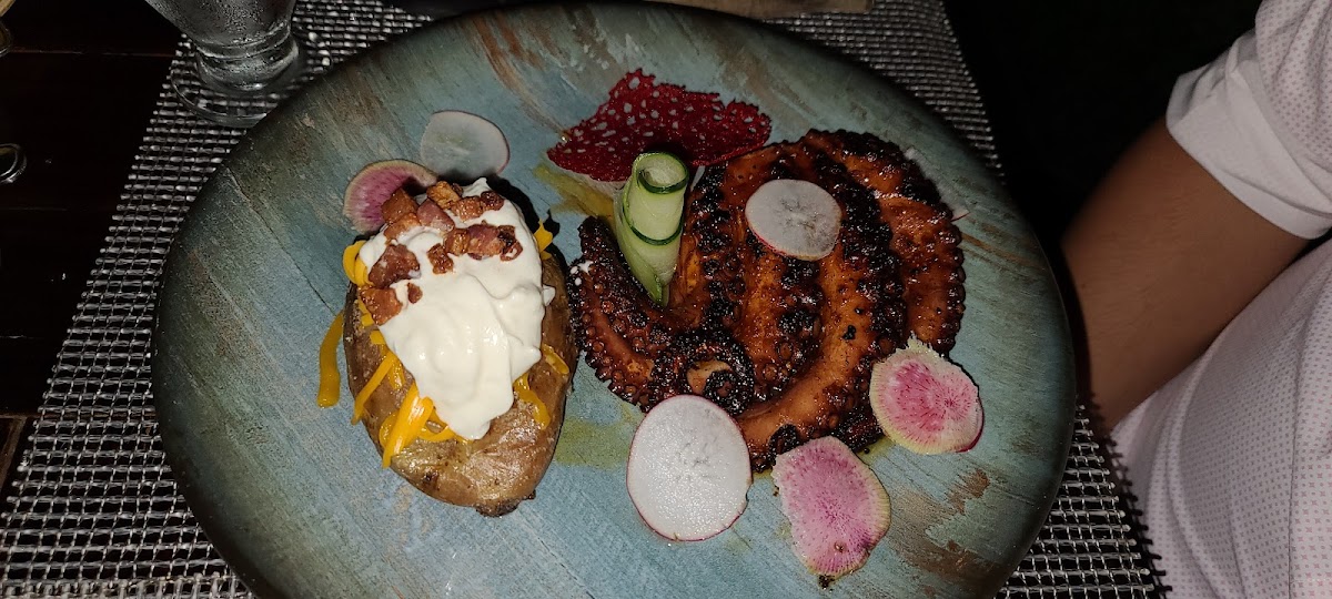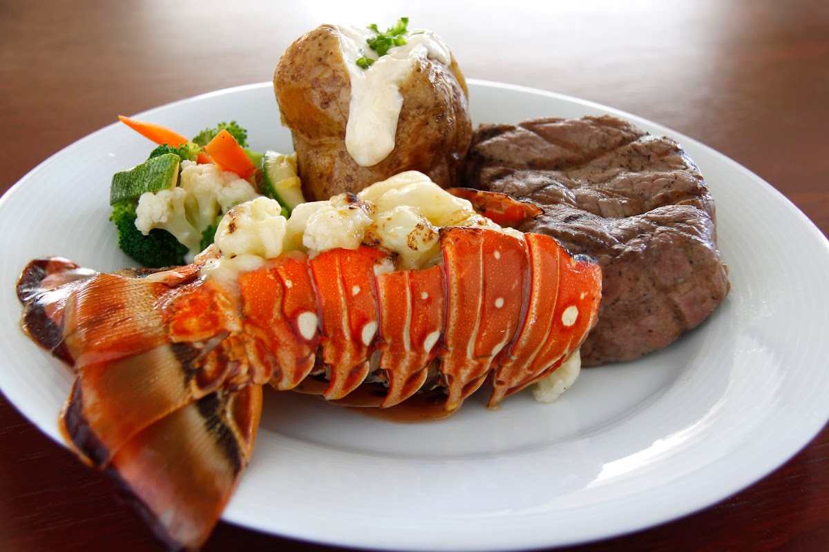 Our second time to the Crab House in Cancun. We had the trio platter with filet, crab claws and 6 large shrimp. The meal preparation was very good and accompanied with a loaded baked potato, with a side order of asparagus. Our meal was great and very large serving. Our table had a great sunset view, which made the evening. We were just surprised to be the only ones dining, so our service was great.